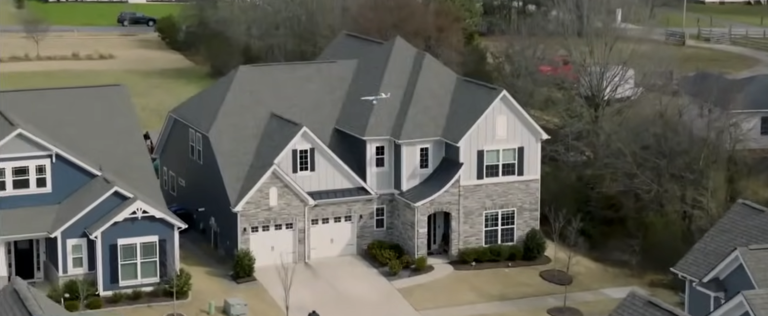 O drone geralmente paira sobre sua propriedade e abaixa o pacote em uma corda, então a folga acima da zona de lançamento é tão importante quanto o espaço no solo.