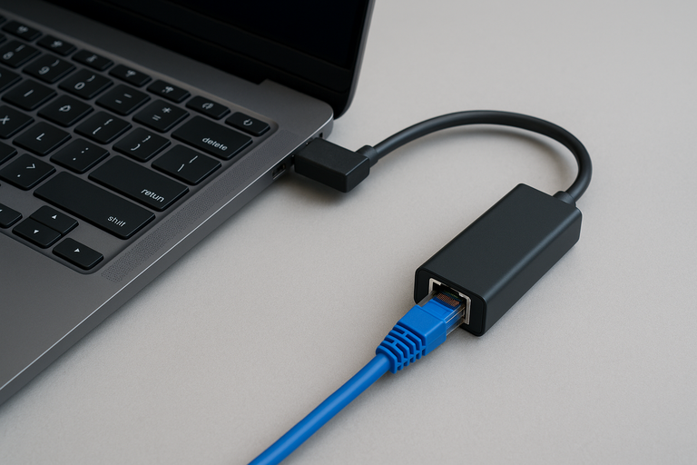 Combine seu adaptador com a porta USB e o sistema operacional corretos. Conecte o adaptador diretamente ao seu dispositivo. Conecte um cabo Ethernet do roteador ao adaptador. Verifique os drivers e o status da conexão nas configurações do sistema operacional. Priorize Ethernet em vez de Wi-Fi, se necessário.