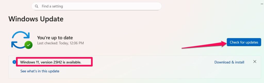 Deslize de baixo para cima na tela do computador de mão. Toque em Configurações. Vá para o Windows Update. Clique em Verificar atualizações. Certifique-se de instalar a atualização chamada Windows 11, versão 25H2.