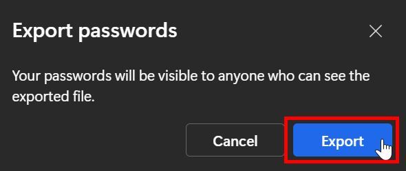 Clique no botão “Exportar“na caixa de diálogo “Exportar senhas”.