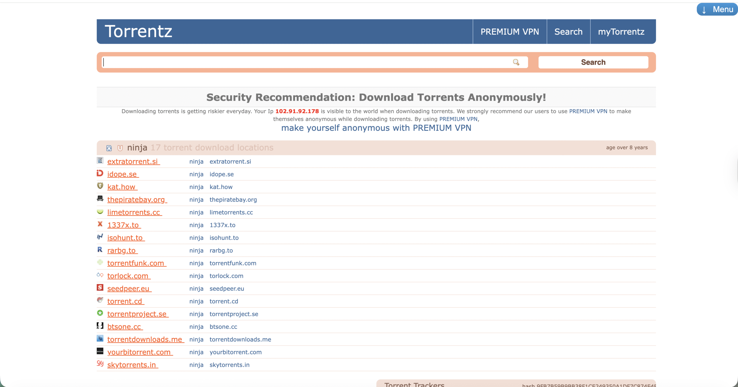 Se bloqueado no ISP ou no nível da rede, considere usar um provedor VPN confiável para alterar seu endereço IP. Ao chegar à página inicial do site, insira o termo de pesquisa na barra de pesquisa estilo Torrentz2 e pressione Enter.