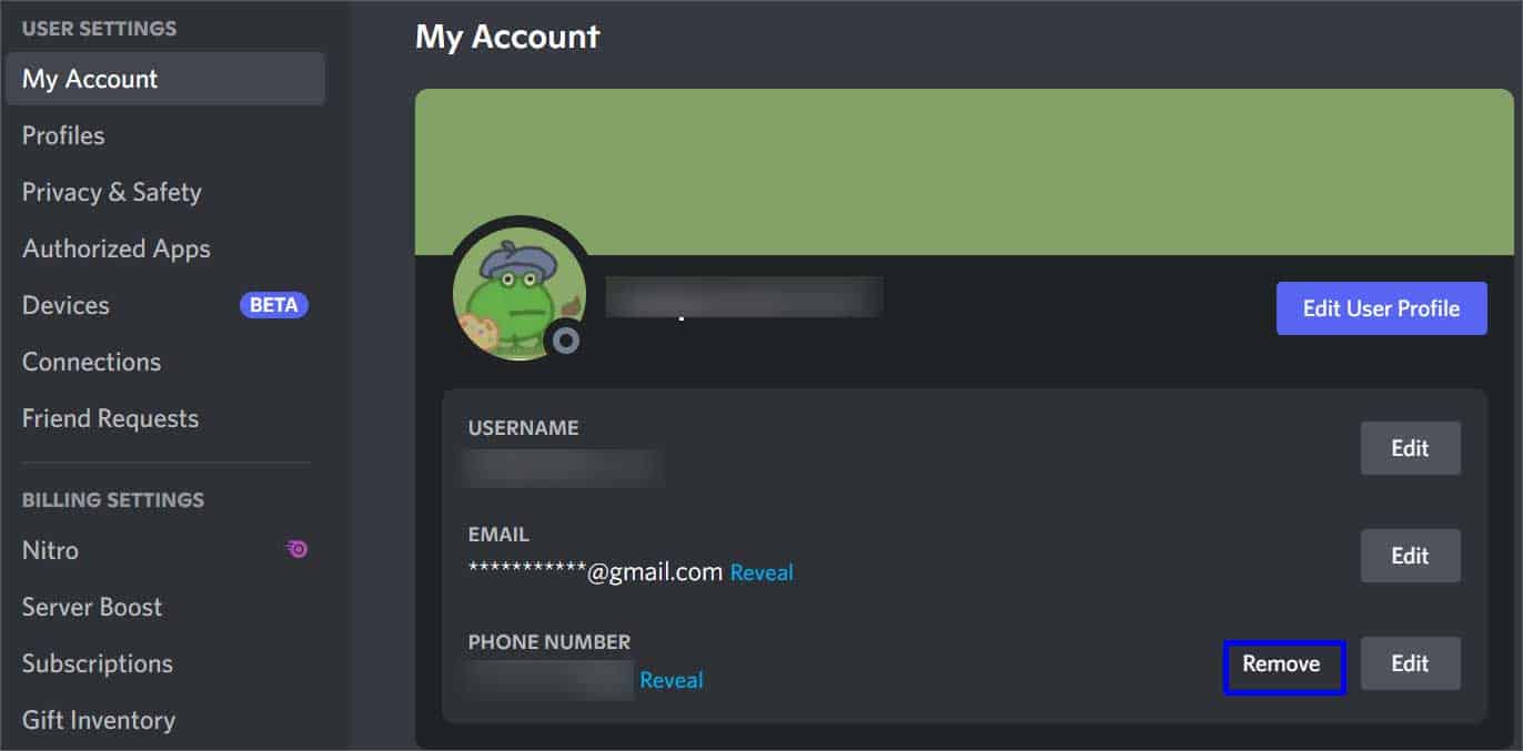 Como remover o número de telefone do Discord?