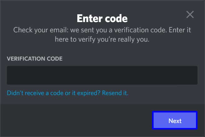 Abra seu Gmail e verifique se você recebeu algum código de verificação. Copie o código pressionando as teclas Ctrl + C . Volte para o Discord e pressione Ctrl + V na barra. Clique no botão Avançar .