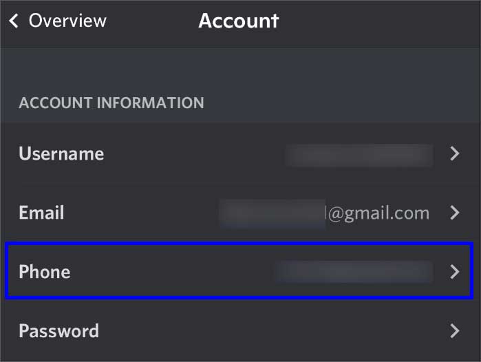 Abra o Discord.Toque no ícone do Perfil . Vá para Conta e toque em Telefone.