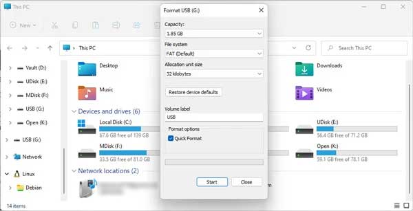 Então, para evitar isso e tornar o USB legível através do BIOS, você deve formatar seu USB e mantê-lo em modo de espera para carregar arquivos e atualizar arquivos nele. As etapas mencionadas abaixo o seguirão na formatação de sua unidade flash USB: