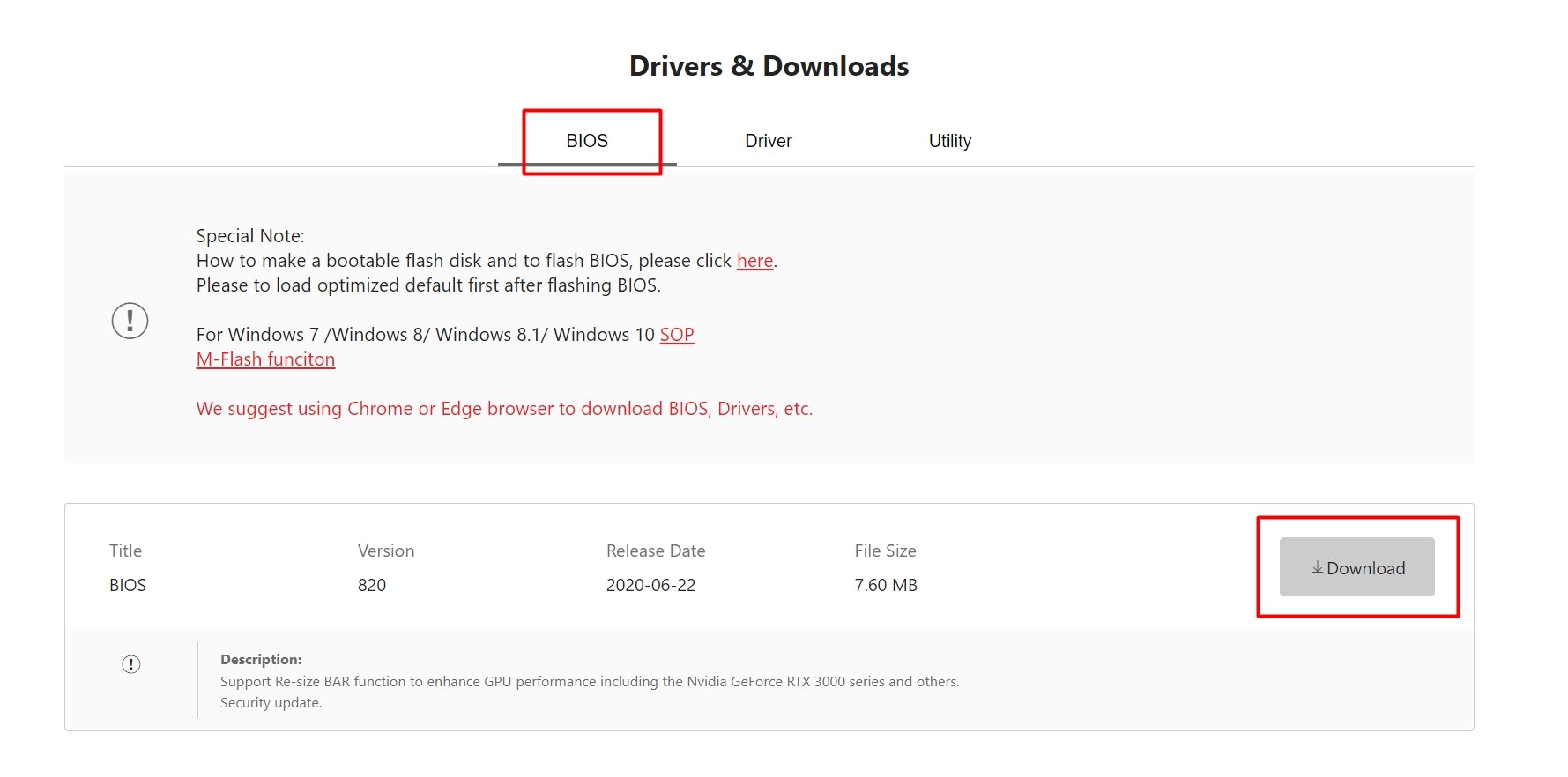 Aqui estão as etapas que você terá que seguir para atualizar o BIOS em sua placa-mãe MSI:
