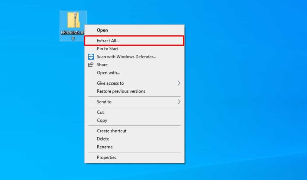 Localize o arquivo zip do BIOS baixado e clique com o botão direito nele. Clique na opção Extrair tudo.. .