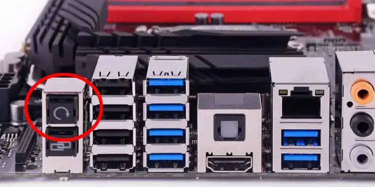 Uma alternativa ao método acima é usar o botão USB BIOS flashback. Basicamente, é um botão físico colocado dentro da placa-mãe que, quando combinado com uma porta dedicada, pode iniciar o processo de instalação do BIOS. Um ponto forte de usar o botão de flashback é que você não precisará entrar no menu do BIOS manualmente (na maioria das vezes).