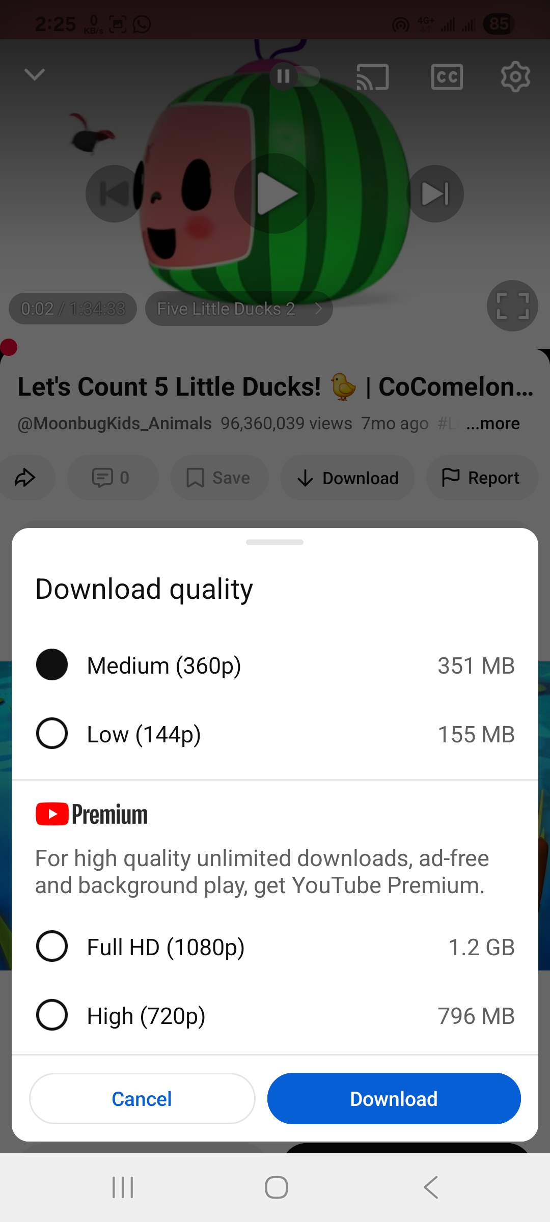 Posso baixar vídeos do Cocomelon gratuitamente? Alguns episódios permitem downloads off-line gratuitos, mas a maneira mais confiável é usar o YouTube Premium.