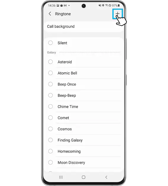 Toque + ou Adicionar toque se disponível no seu modelo.