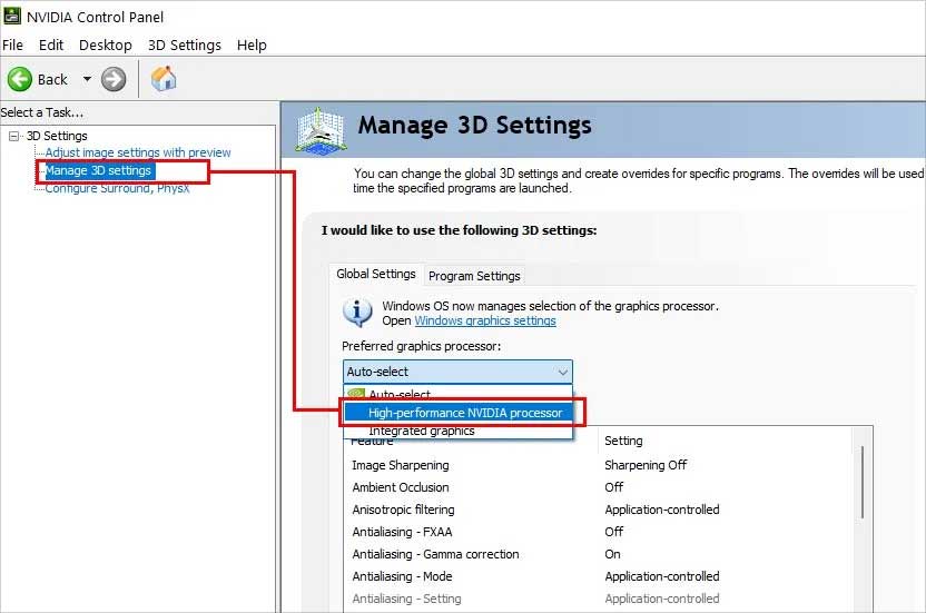 Com a GPU dedicada, você’terá duas GPUs conectadas ao seu PC. Como as GPUs dedicadas não são poderosas o suficiente para lidar com gráficos grandes, isso pode estar causando esse erro quando você está jogando. Nesse caso, mudar sua GPU padrão para sua placa gráfica corrigirá esse erro.
