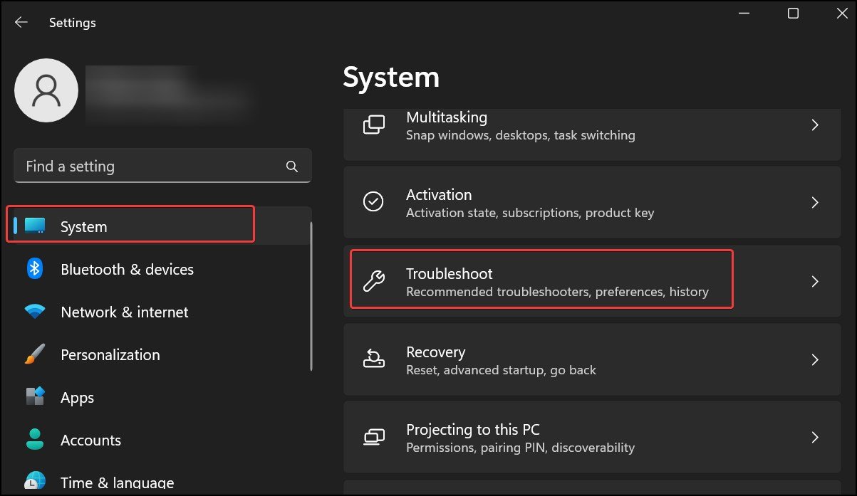 Abra Configurações. Vá para Sistema > Solucionar problemas.