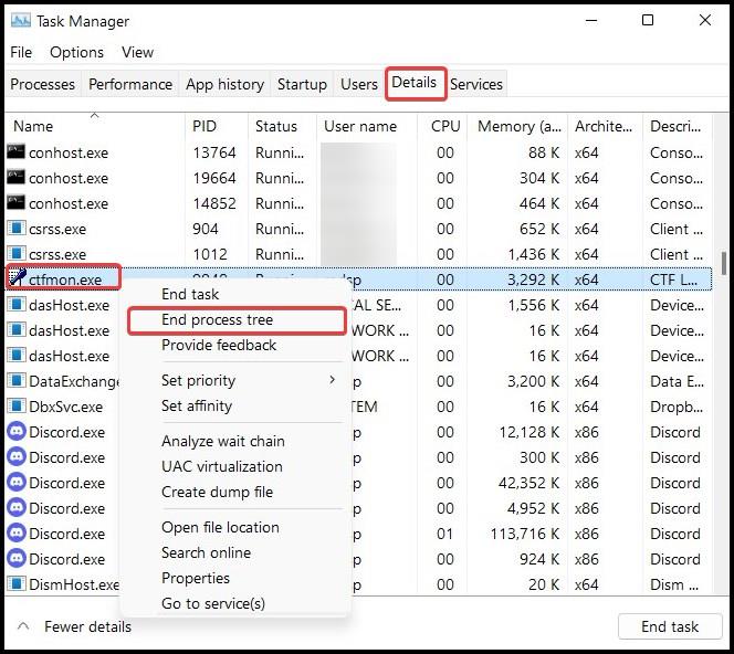 Você pode interromper o processo ctfmon.exe para resolver o problema com o teclado. Você pode encerrar o processo Ctfmon.exe no Gerenciador de Tarefas.