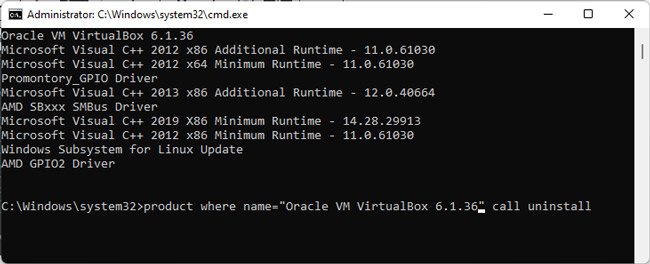 Desde que o VirtualBox esteja registrado no WMI, você também pode desinstalar o VirtualBox com o utilitário WMIC. Aqui estão as etapas necessárias: