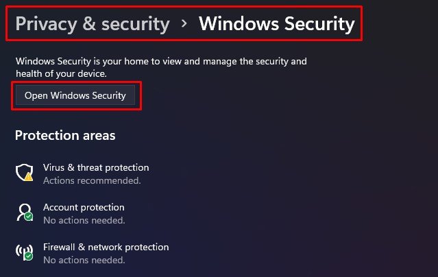 Download a ferramenta Device Guard and Credential Guard Hardware Readiness da Microsoft.Pressione Windows +’R’para abrir a caixa de diálogo Executar. Digite powershell e pressione Ctrl + Shift + Enter para executar Powershell no privilégio administrativo. Digite DG_Readiness_Tool_v3.6.ps1-Desabilite o comando-AutoReboot. Você deve substituir a v3.6 pela versão da ferramenta que você baixou.Pressione Windows +’R’e digite ms-settings:windowsdefender para abrir a Segurança do Windows. Clique em Abra a Segurança do Windows.