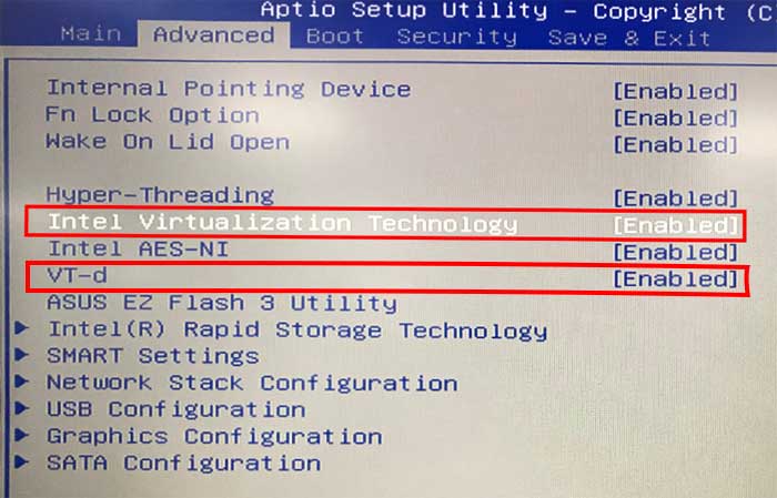 Virtualização desabilitada Conflito devido à interferência do Hyper-V habilitada por terceiros Programas de segurança, aplicativos e recursos Software Virtual Machine Manager com defeito Alocação de memória inadequada