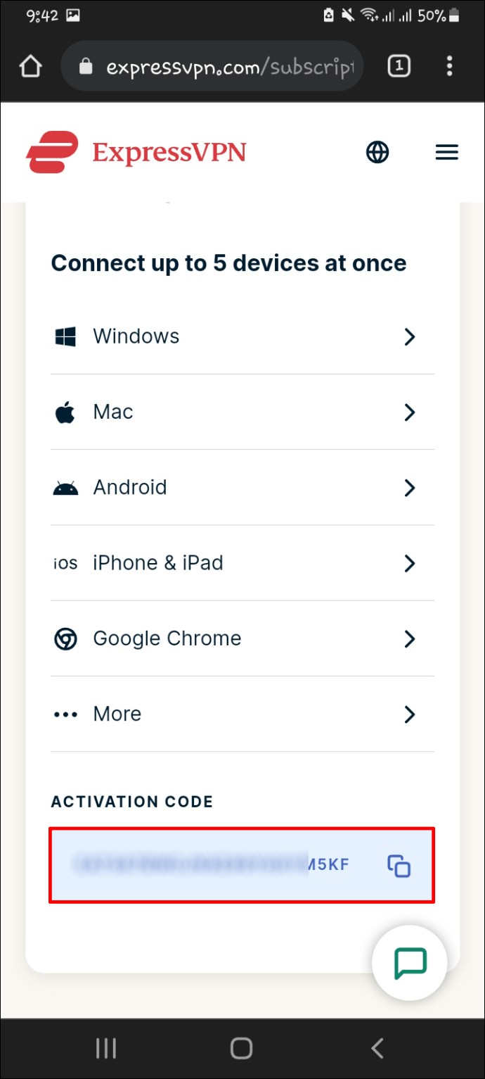 Copie o código de ativação mostrado na página de download da ExpressVPN ou mantenha a janela do navegador aberta.