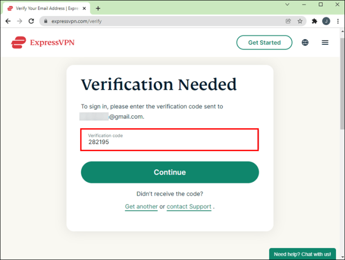 Verifique o e-mail que você digitou ao se registrar para obter um código de verificação. Digite o código quando solicitado no site da ExpressVPN.