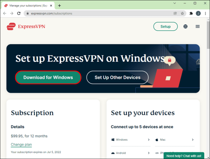 Clique no botão verde”Download”do seu sistema operacional para baixar o aplicativo ExpressVPN.