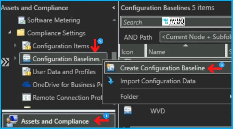 Agora vamos criar uma linha de base de configuração do SCCM usando o console SCCM. Para isso, vá para: