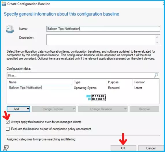 Além disso, não se esqueça de marcar a caixa de seleção que menciona Sempre aplicar esta linha de base mesmo para clientes cogerenciados e clicar em OK, conforme mostrado abaixo na imagem. Se você não habilitar essa opção, normalmente receberá o seguinte erro em DCMAgent.log.
