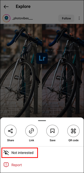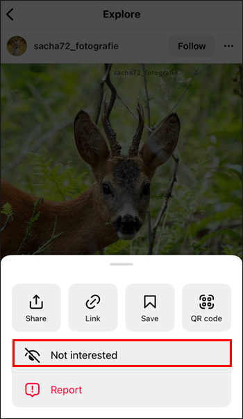 Pressione”Não tenho interesse”para alertar o algoritmo de que você não gostou da postagem.