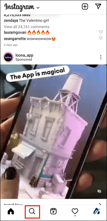 Navegue até a página”Explorar”tocando no ícone da lupa.