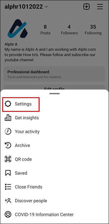 Toque no ícone de três linhas verticais e escolha”Configurações.”