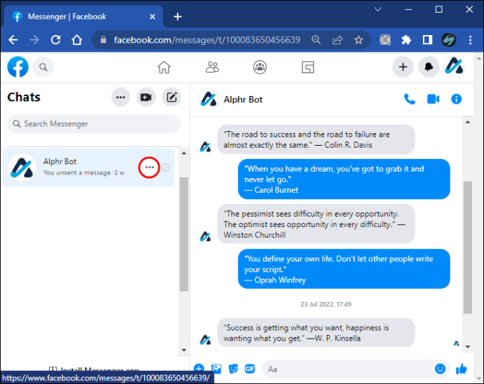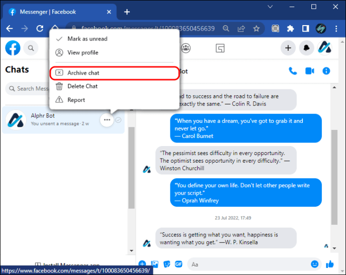 Para arquivar usando o aplicativo Facebook Messenger (messenger.com), faça o seguinte: