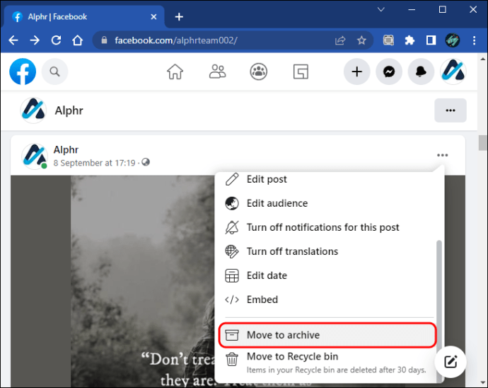 Isso é tudo para arquivar postagens no Facebook. Se chegar um momento em que você gostaria de disponibilizar novamente uma postagem arquivada, poderá fazer a alteração facilmente. Você pode restaurar seu conteúdo arquivado acessando seu registro de atividades. Para restaurar uma postagem arquivada, siga estas etapas: