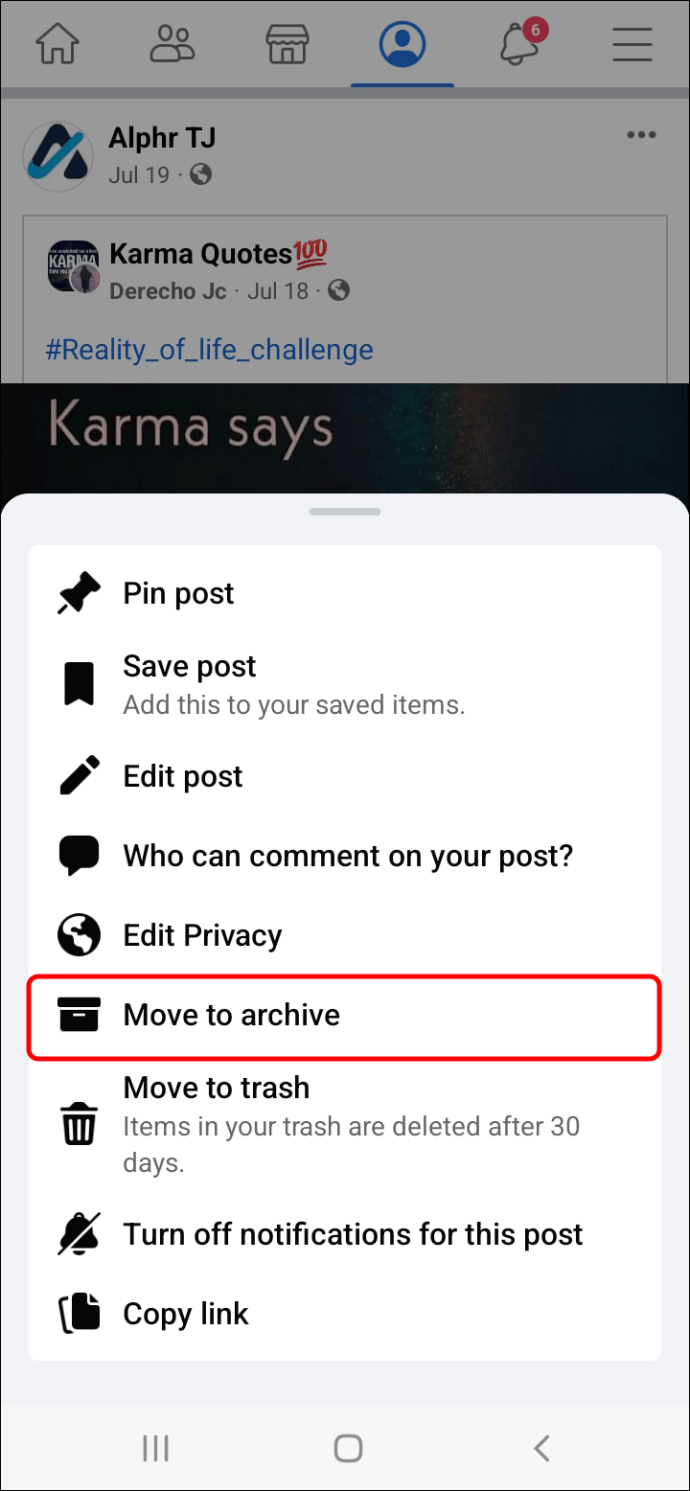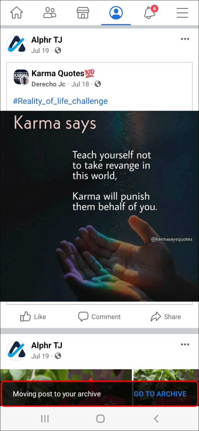 Você receberá uma notificação informando que sua postagem foi movido para o arquivo. Você também pode tocar no link para ir diretamente ao arquivo.
