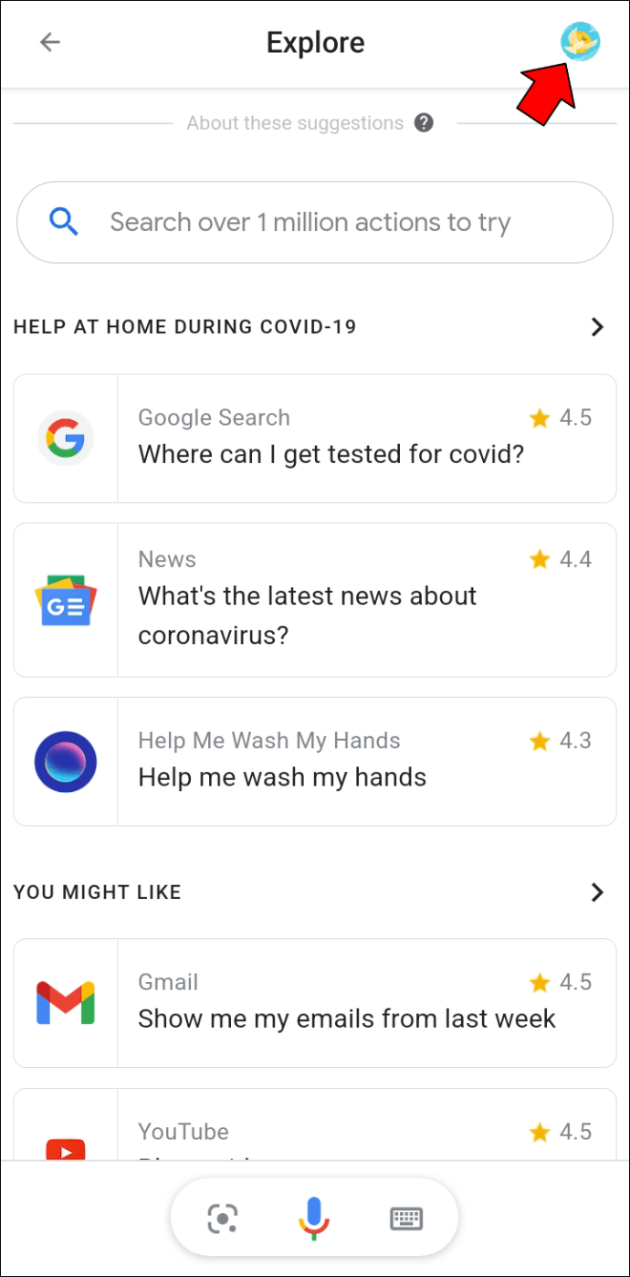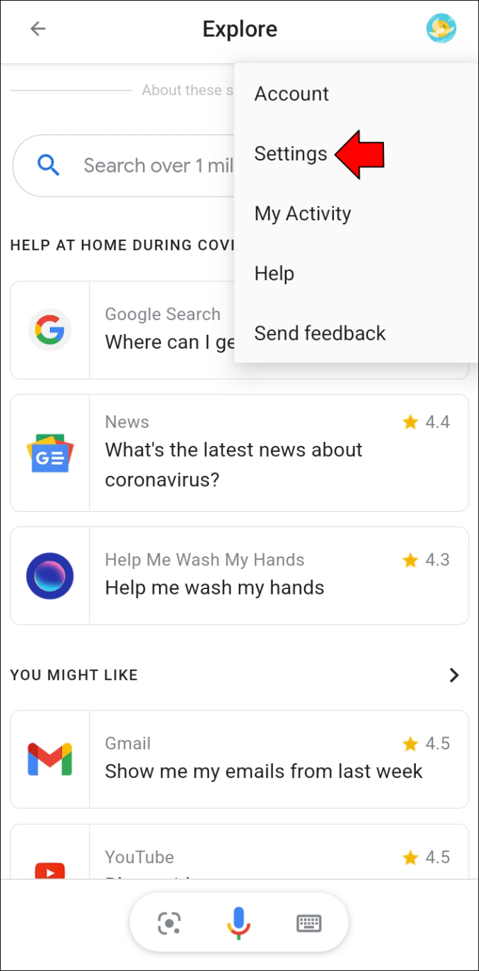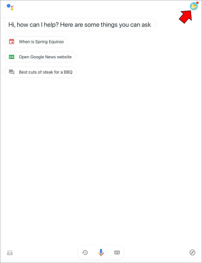Se você não gosta de usar comandos de voz para interagir com o Google Assistente, você pode controlar seu comportamento digitando os comandos. Tudo o que você precisa fazer é iniciar o aplicativo Assistant e o programa começará a ouvir seu comando. Quando você vir quatro pontos, selecione-os e pressione o ícone do teclado.