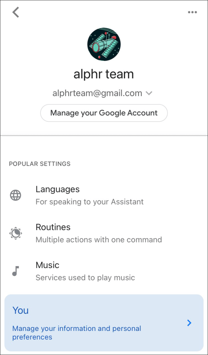 Abra Configurações e personalize sua experiência com o Google Assistente