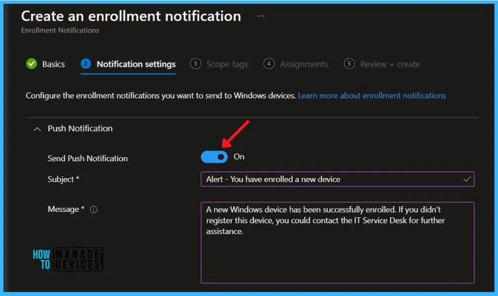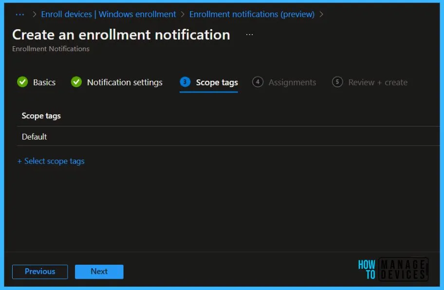 Tags de escopo – Configurar notificações de inscrição de dispositivo no Intune 7
