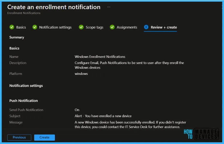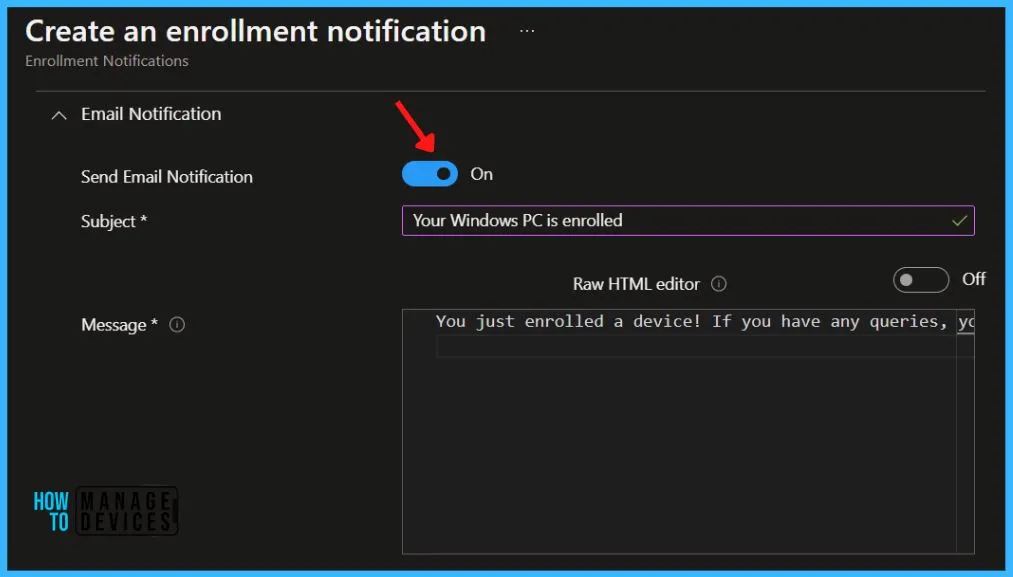 Criar uma notificação de inscrição – Configurar notificações de inscrição de dispositivo no Intune 3