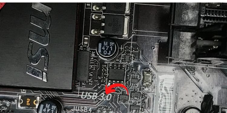 Em seguida, navegue até sua placa-mãe e localize o cabeçalho USB examinando a etiqueta das portas. Bem, a localização do conector USB está na parte inferior ou no lado direito, dependendo do tipo que discutimos anteriormente. Agora, pegue o conector do cabo USB interno ou o cabo fêmea e simplesmente insira-o no conector USB, garantindo o alinhamento correto dos pinos.