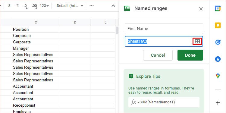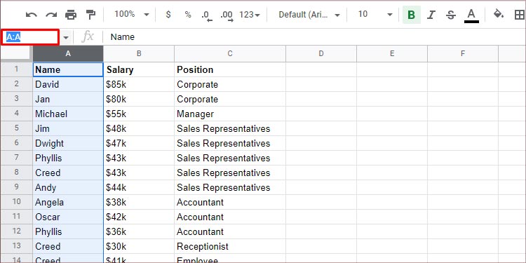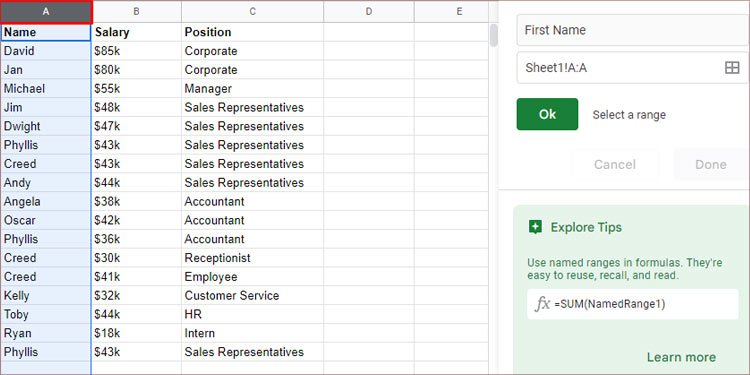 É necessário mencionar o intervalo da célula se desejar aplicar formatação condicional ou fórmulas em uma coluna no Planilhas Google. Você pode, no entanto, cobrir a coluna inteira renomeando-a.