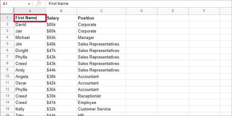 Renomear colunas não altera o título de A, B ou C para outros termos. Mas, eles alteram o valor que os títulos nas colunas têm. No entanto, você pode integrar linhas e usá-las como cabeçalhos em vez de alfabetos. Aqui, neste artigo, compilamos vários métodos para renomear colunas no Planilhas Google.