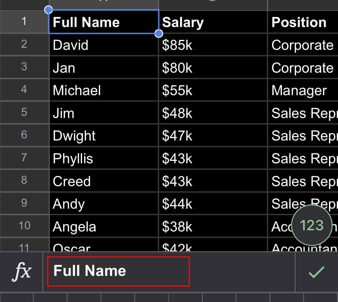 Abra o documento preferido no Planilhas Google. Escolha uma célula com um título e toque nela.