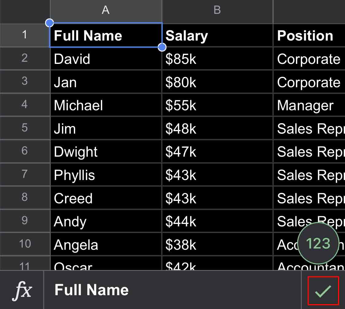 Abra o aplicativo Planilhas em seu telefone e abra o documento de destino.Toque na célula com o título.