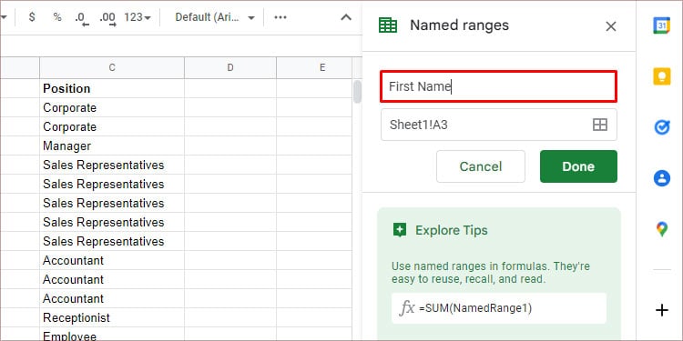 É necessário mencionar o intervalo da célula se desejar aplicar formatação condicional ou fórmulas em uma coluna no Planilhas Google. Você pode, no entanto, cobrir a coluna inteira renomeando-a.
