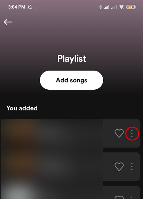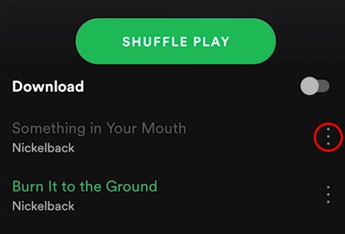 Ou, clique nos três pontos ao lado da música esmaecida.