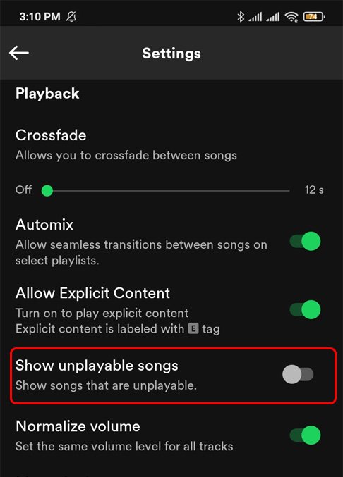 As músicas ocultas por você desaparecem da lista de reprodução se você tiver “Ocultar músicas não reproduzíveis“ativado. Se esse recurso estiver ativado, as músicas ocultas não serão exibidas para você, portanto, você terá que desativá-lo. Veja como desativá-lo:
