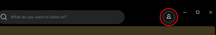 Abra o aplicativo Spotify. Clique no ícone perfil no canto superior direito.