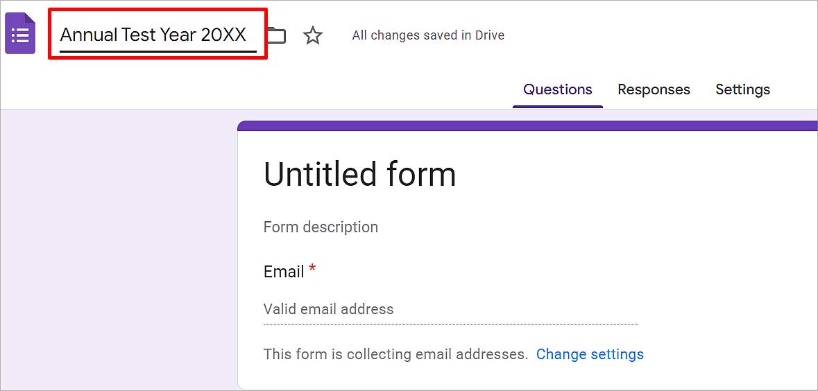 Clique em Formulário sem título na faixa de opções e escreva o nome com o qual deseja salvar este formulário. Ele é salvo automaticamente no título.