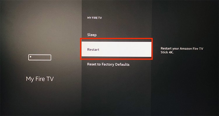 Após desligar o Firestick, ele irá ligue novamente. Caso você não veja a mensagem na tela, tente pressionar novamente o botão de atalho para reiniciar no controle remoto.