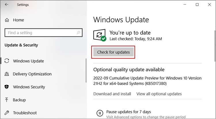 Vá para Configurações do Windows e clique em Atualização e segurança. Clique na opção Verificar atualizações. O sistema verificará todas as atualizações possíveis e fará o download delas.