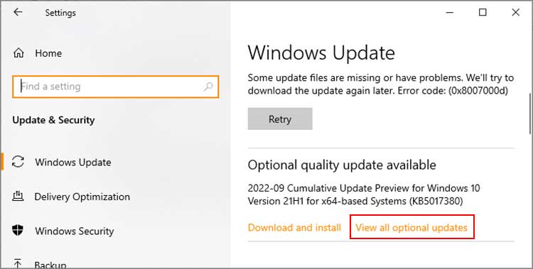 Além disso, você pode pressionar Ver todas as atualizações opcionais abaixo do botão Verificar atualizações.