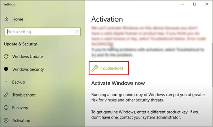 Nas janelas de ativação, seguindo as mesmas etapas anteriores, pressione a opção Solução de problemas.