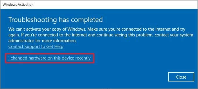 Em tal cenário, você pode usar a opção Solução de problemas de ativação do Windows. Ele vinculará sua conta da Microsoft e fará com que o servidor da Microsoft reconheça seu dispositivo com novo hardware.